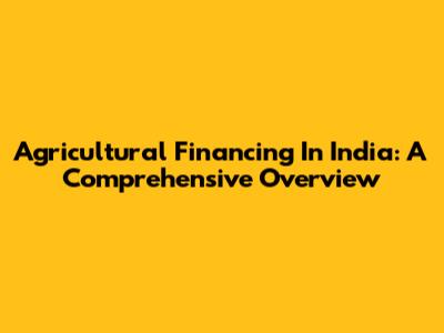 Agricultural Financing In India: A Comprehensive Overview