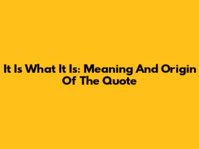 It Is What It Is: Meaning And Origin Of The Quote