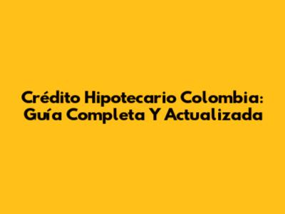Crédito Hipotecario Colombia: Guía Completa Y Actualizada