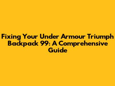Fixing Your Under Armour Triumph Backpack 99: A Comprehensive Guide