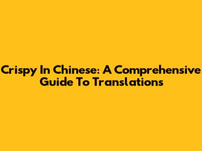 Crispy In Chinese: A Comprehensive Guide To Translations