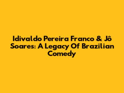 Idivaldo Pereira Franco & Jô Soares: A Legacy Of Brazilian Comedy