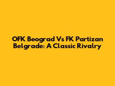 OFK Beograd Vs FK Partizan Belgrade: A Classic Rivalry