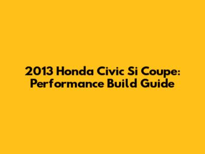 2013 Honda Civic Si Coupe: Performance Build Guide