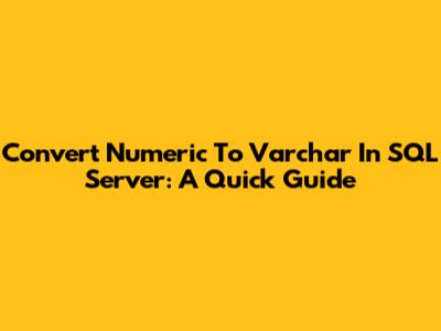 Convert Numeric To Varchar In SQL Server: A Quick Guide