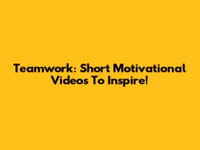 Teamwork: Short Motivational Videos To Inspire!